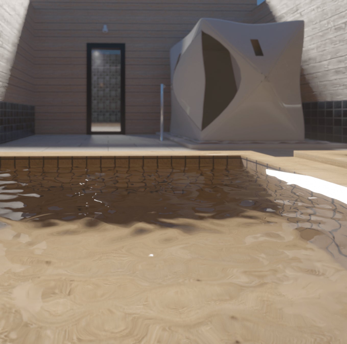 全客室に設置された専用の露天風呂にテントサウナ、そして天然水の水風呂。