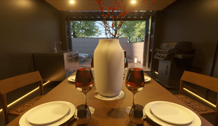 食事スペース ・BBQコンロ ・食器棚 ・ダイニングテーブル